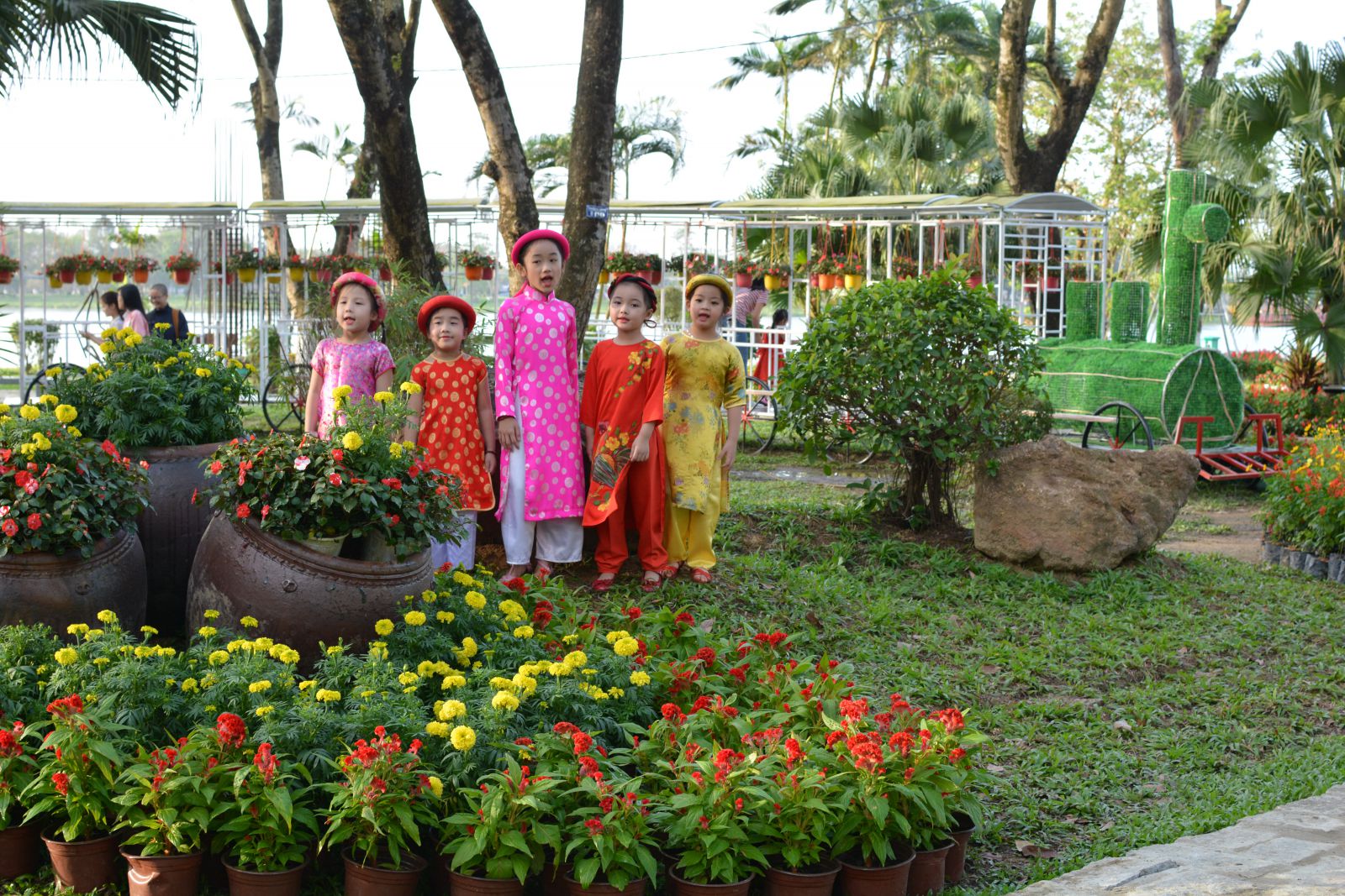 Năm nào cũng vậy, tà áo dài được bạn trẻ lựa chọn để khoe sắc cùng xuân. Những khu vực như công viên Quốc Học, chợ hoa Trần Hưng Đạo, … tràn ngập áo dài với đủ màu sắc. Không ít gia đình cũng tranh thủ tiết trời tạnh ráo tranh thủ đưa con đi chụp ảnh.
