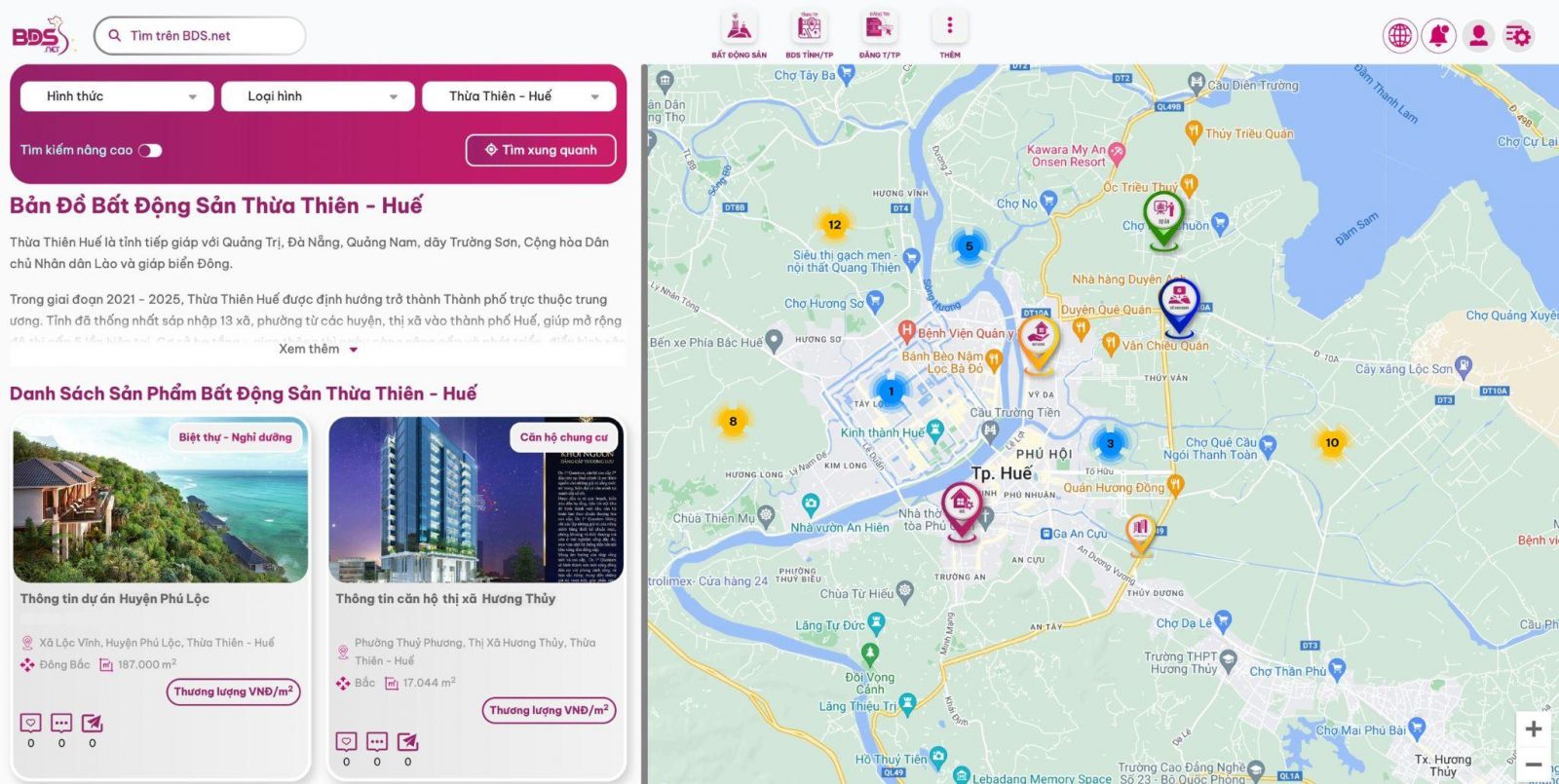 Ở thị trường BĐS & Nhà đất Thừa Thiên Huế, Bản đồ số hỗ trợ giới thiệu ưu điểm nhà đất mới nhất Huế, trực quan sinh động với đa dạng phương thức: