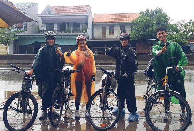 Hoàng Hải (ngoài cùng bên trái) trong dự án đạp xe gây quỹ cho các trẻ em ở Trung Tâm Bảo Trợ Người Khuyết Tật Tịnh Trúc Gia, một trong những hoạt động "gap year" của Hải