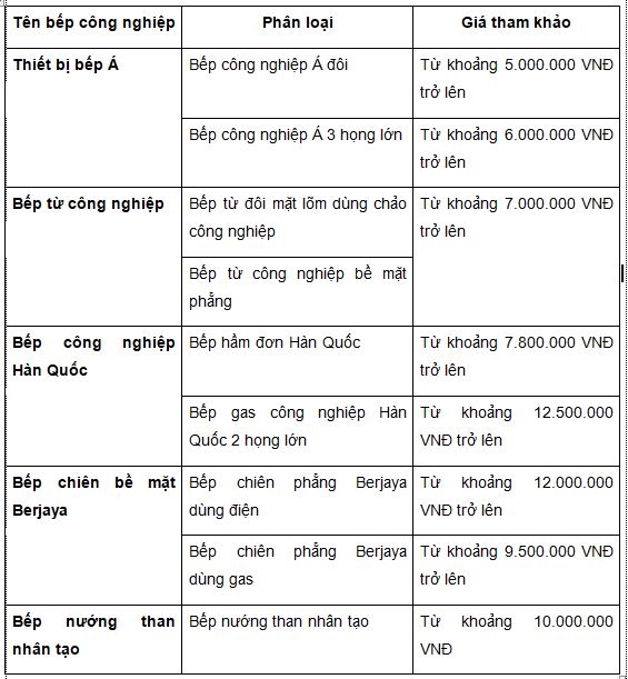 Dưới đây là bảng báo giá tham khảo một số các thiết bị bếp công nghiệp giá tốt tại Trần Gia Phát như sau: