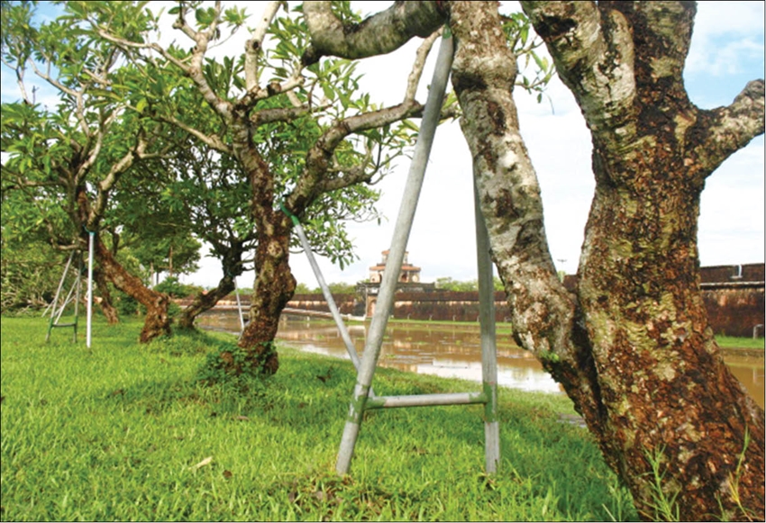 | Những cây sứ cổ thụ này được chống đỡ đúng cách nên cũng không bao giờ bị đổ |