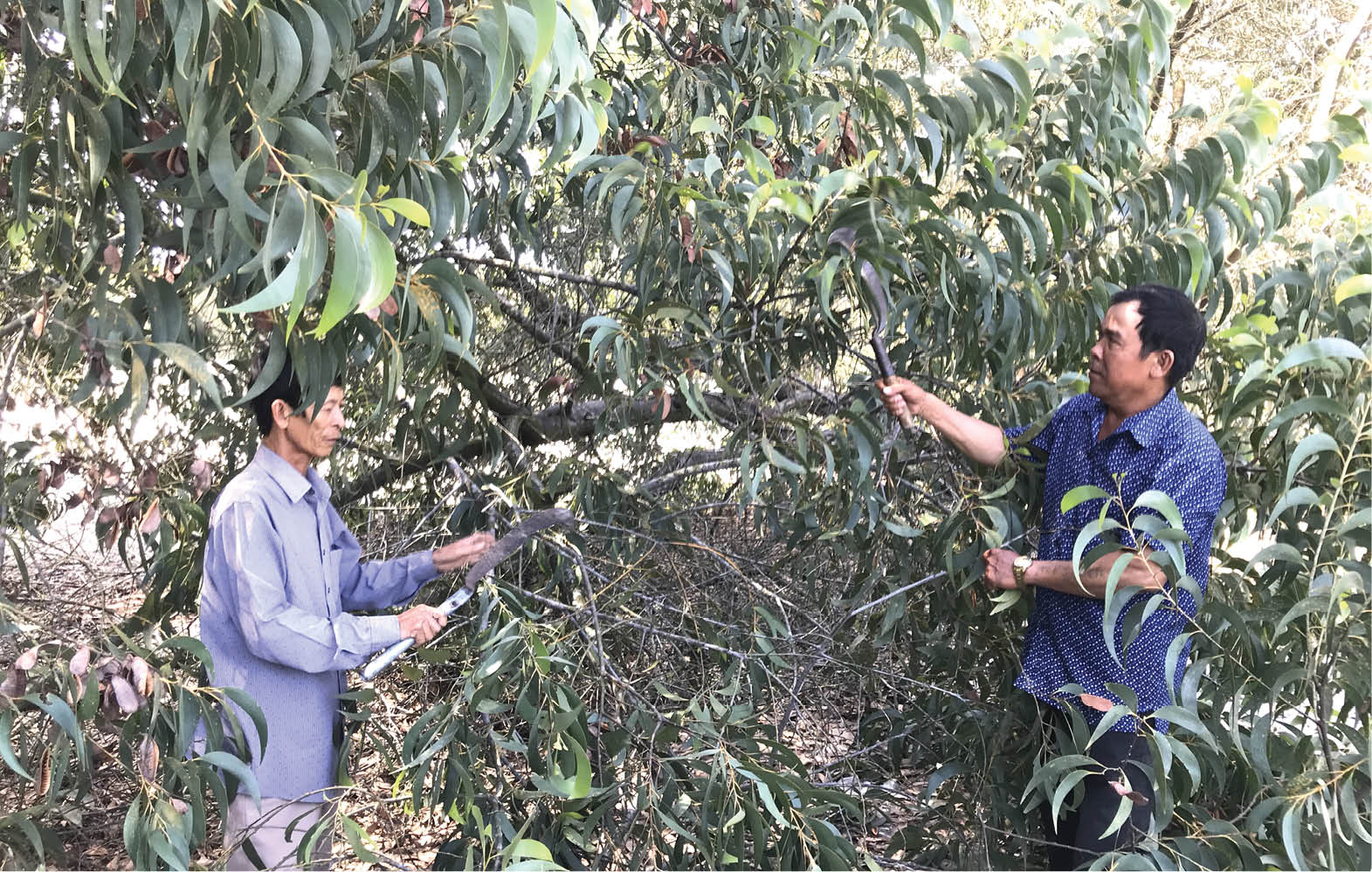 Chúng tôi đến thôn 2, xã Quảng Ngạn đúng lúc Chi hội CCB đang họp phân công các thành viên đi kiểm tra rừng, phát quang bụi rậm theo kế hoạch. Công việc đã vào guồng nên sau khi họp triển khai, các thành viên bắt tay ngay. Người cầm rựa, người cầm mác tiến hành tuần rừng và phát quang bụi rậm, nhánh khô để phòng cháy rừng mùa nắng nóng.