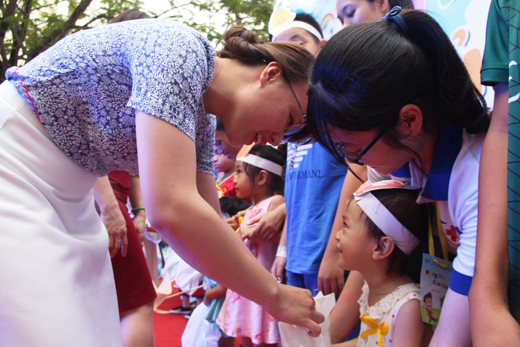 Ban tổ chức trao quà đến các bệnh nhi
