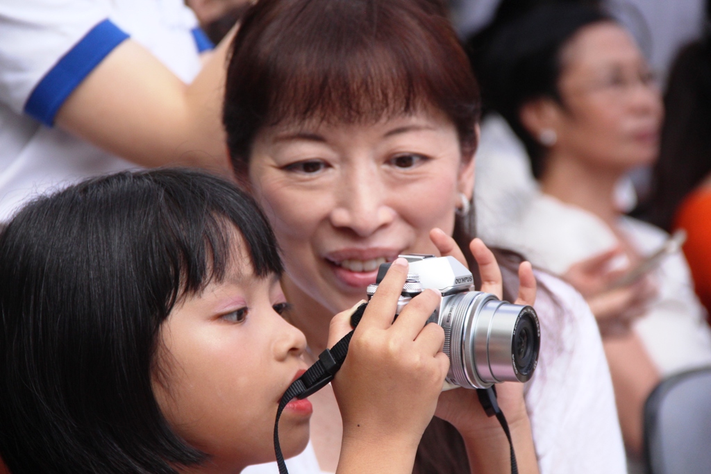 Bà Wantanabe đến từ Nhật Bản đang hướng dẫn một bệnh nhi cách chụp hình các bạn của mình ở lễ hội
