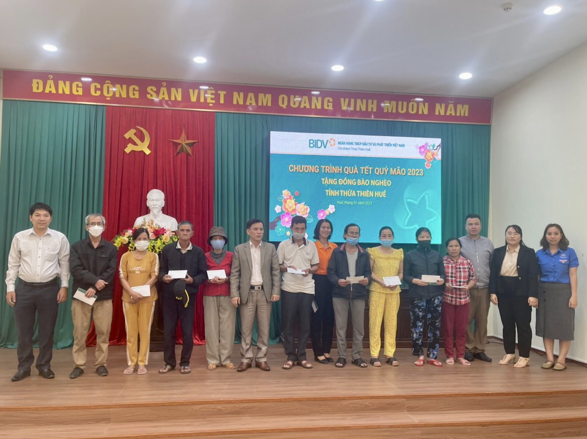 Đối với tỉnh Thừa Thiên Huế, nhân dịp Xuân Quý Mão 2023, BIDV đã dành 400 phần quà Tết với tổng trị giá 200 triệu đồng dành tặng cho đồng bào nghèo toàn tỉnh.