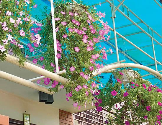 Vừa xây xong nhà, lại có con nhỏ mới 3 tuổi, anh Trần Văn Tâm (TP. Huế) chọn lựa vườn treo cho căn hộ ven đô. Theo anh Tâm, vì con còn nhỏ, lại hiếu động, nên để đảm bảo an toàn cũng như tạo nên khoảng xanh, anh quyết định làm vườn treo cao 1,5m.