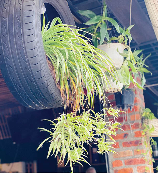 Chị Trần Ngọc Linh (TP. Huế) cho biết: “Là người yêu thích sự lãng mạn nên mình muốn không gian xanh phải cầu kỳ một chút. Thay vì các loại dây treo, mình mua sợi về tự đan macrame (nghệ thuật thắt dây) làm vườn treo, vừa đẹp vừa độc, lạ”. Thành quả sau hai ngày cuối tuần, bức tường vốn để trống của chị Linh đã có những chậu treo macrame xinh xắn.