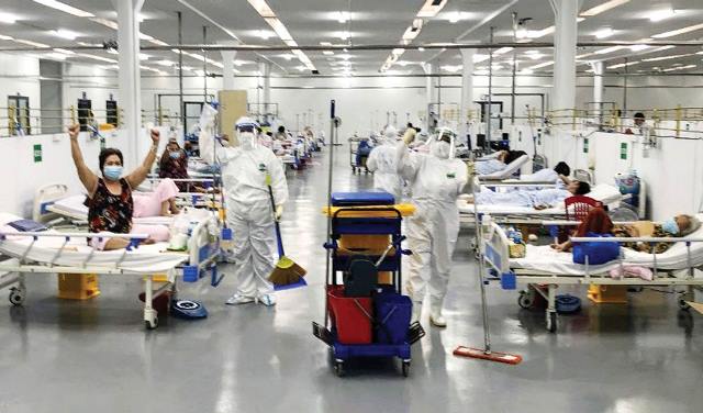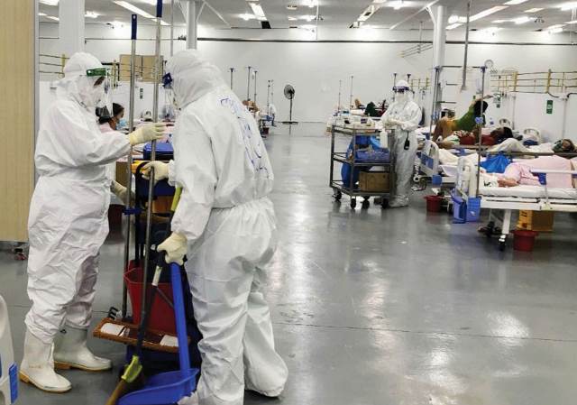 Gần 1 tháng nay, trong bộ đồ bảo hộ chống dịch, chị Văn Thị Phước (47 tuổi) luôn tay với công việc vệ sinh ở các buồng bệnh điều trị. Công việc chính của chị là lau chùi khử khuẩn ở mặt sàn, mặt tường, thành giường bệnh… đảm bảo cho buồng bệnh luôn sạch, giảm nguy cơ lây nhiễm chéo trong môi trường y tế.