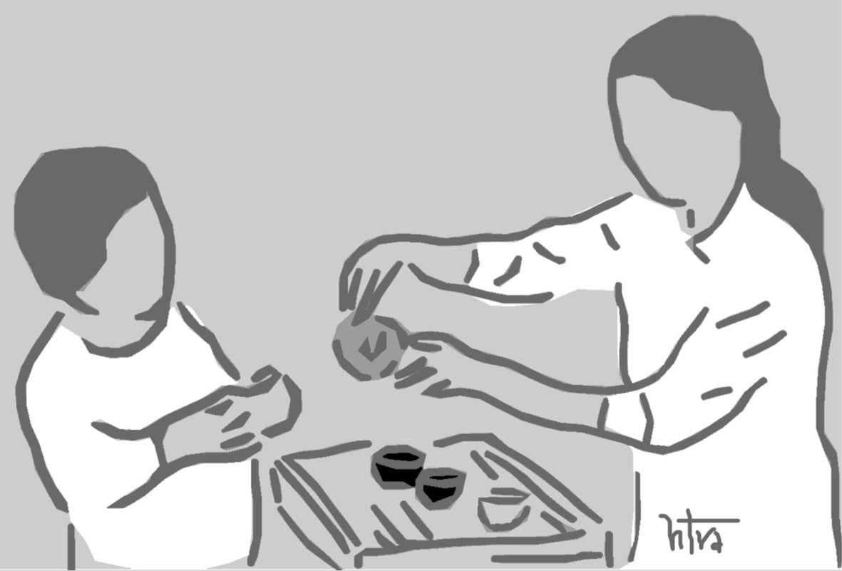 Con gái đầu của chị đang học cấp hai, ngoài chi phí ăn uống, sắm sửa, mỗi tháng cũng tốn khá nhiều tiền cho việc học này, học kia. Lịch học của cháu dày đặc. Chị diễn giải để con phát triển, thông minh thì phải làm thế này, thế kia như là "chuyên gia" đang "lên lớp" cho tôi về giáo dục, về dinh dưỡng. Tôi chợt nghĩ hay là mình đã "lỗi thời" về cách nuôi con, dạy con, rồi lại nghĩ đến điều kiện, môi trường, hoàn cảnh, rồi cách sống, sinh hoạt mỗi người cũng khác nhau nên rất khó và không thể "theo" chị. Còn cháu bé hình như đã chán các loại đồ chơi nên tìm kiếm cái này, lục lọi cái kia, rồi quay sang nghịch bộ ấm chén làm nước chảy ra cả bàn. Thấy vậy nhưng chị chẳng nói gì, còn tôi thì lo cho cháu làm vỡ nên đẩy bộ ấm chén vào sát vách tường.