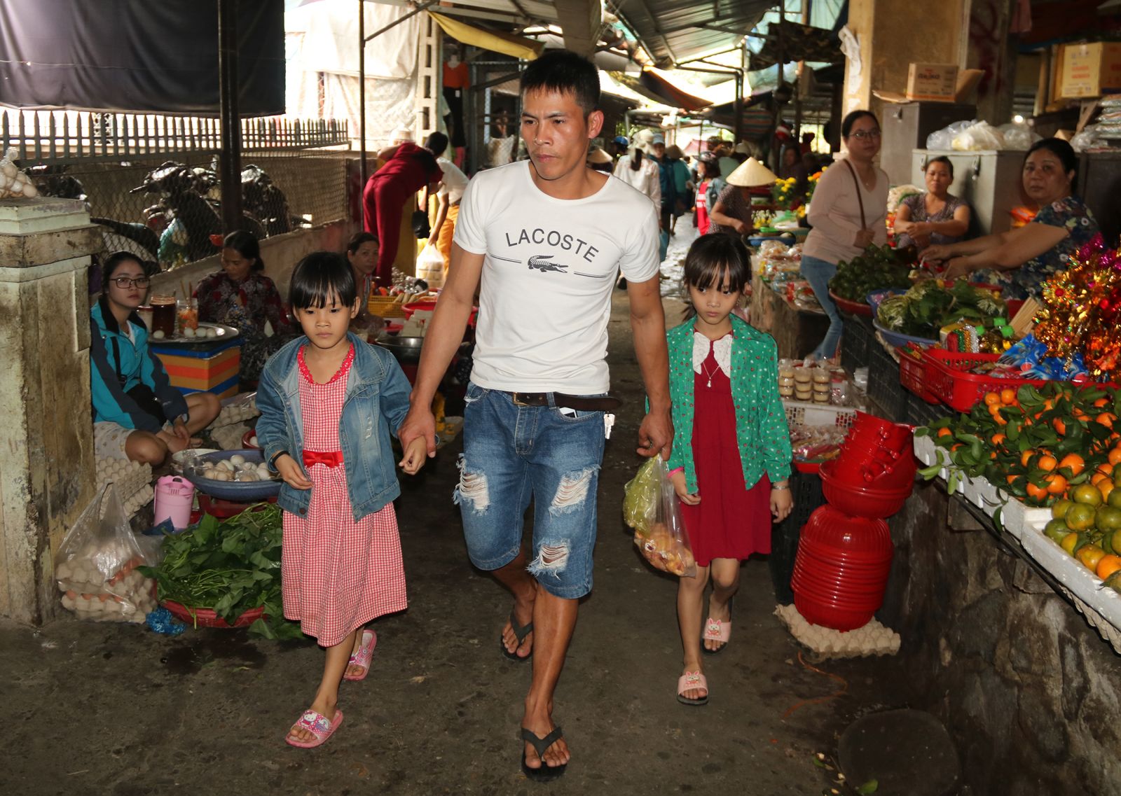 Anh Thể dẫn con đi mua sắm ở chợ Vỹ Dạ