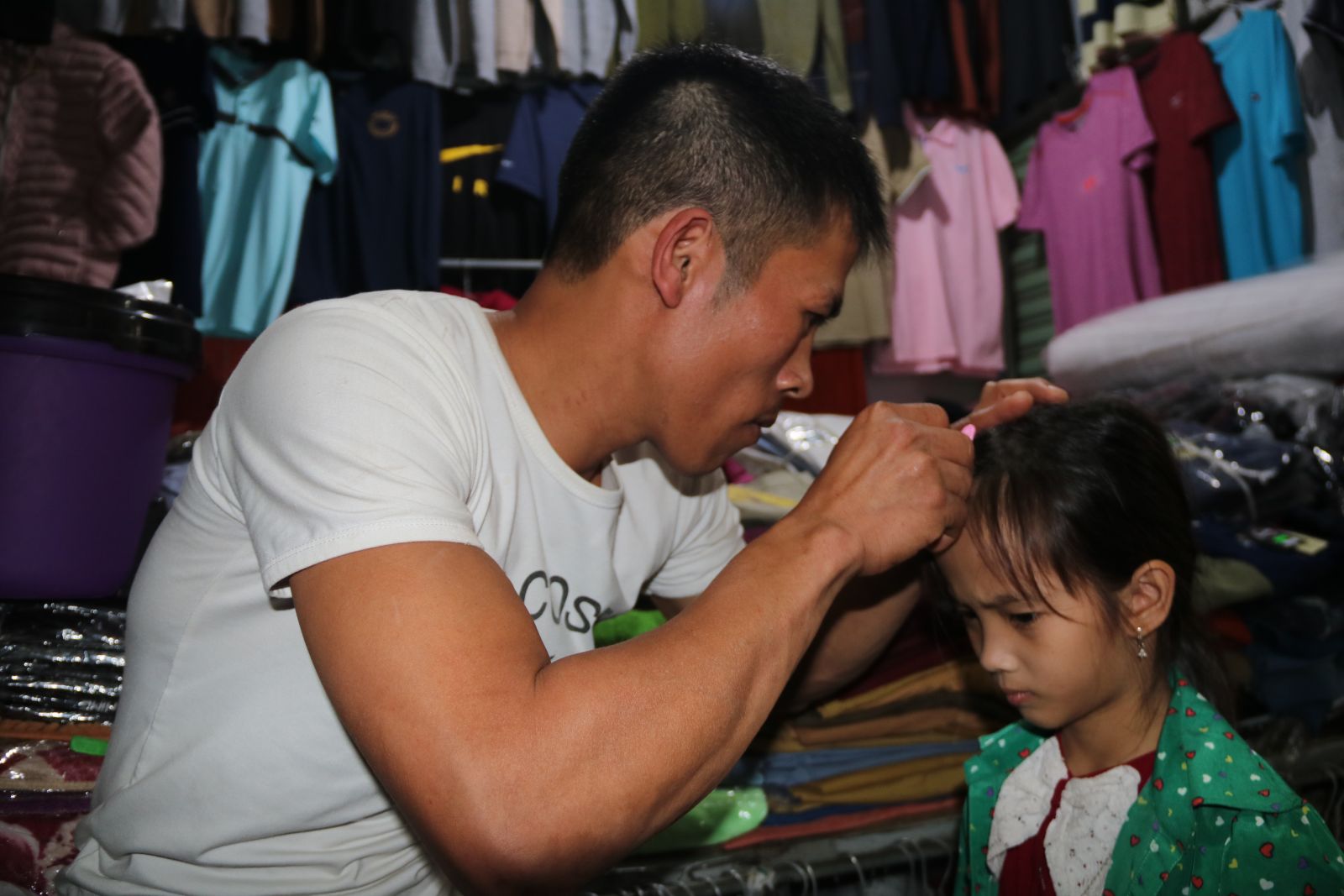 Cài lên mái tóc con chiếc kẹp mới, anh Thể dặn cọn: "Món quà này cũng là tình cảm của ba"