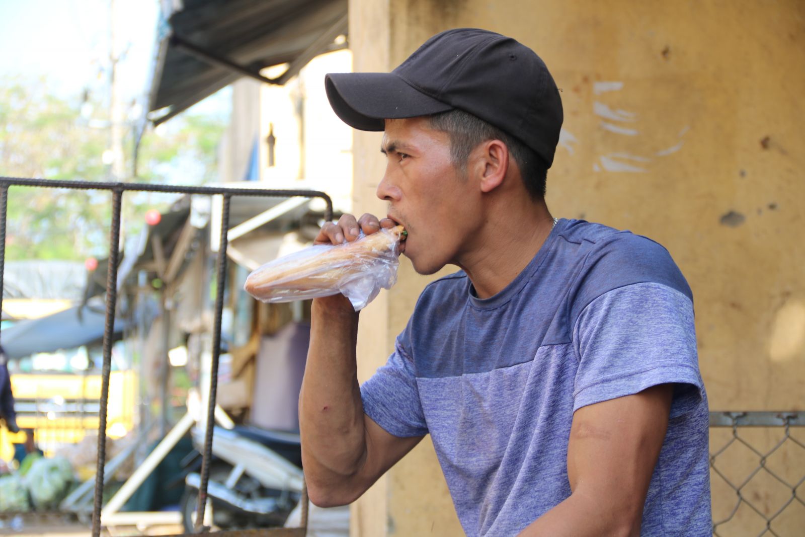 Sau một đêm thức trắng, sáng hôm sau, chưa kịp lót dạ, Thể được tăng cường về bốc hàng ở chợ Bãi Dâu. Đến xế trưa, tranh thủ bốc xong xe tải hành tỏi, anh tranh thủ nhai vội ổ bánh mì. Gặp lại tôi, anh cười hiền: “Từ 7 giờ tối qua tới chừ không ăn chi, làm mệt nên quên đói luôn”.