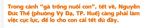 Hỏi Thể có buồn khi tết là dịp sum vầy, giọt nước mắt lăn trên khóe mắt người đàn ông rắn rỏi: “Làm việc quần quật rồi về lo việc nhà thì quên nhưng đêm về, đôi khi tôi khóc thầm. Nghĩ đến hoàn cảnh gia đình, đêm ngồi nhìn con say giấc mà chảy nước mắt. Tết năm ngoái, tôi buồn đứt ruột nhưng năm nay có lẽ sẽ đỡ hơn, vì đã quen với sự thiếu vắng”.