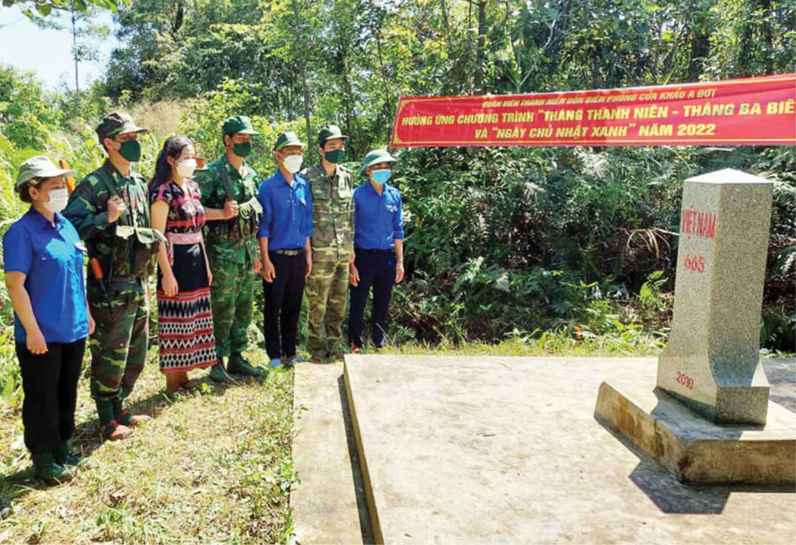 Thiếu tá Trần Quốc Toản, Chính trị viên phó Đồn Biên phòng cửa khẩu A Đớt bộc bạch, anh cùng đồng đội đã xúc động thầm “báo công” trong Lễ chào cờ “Tôi yêu Tổ quốc tôi” thiêng liêng tại cột mốc này, rằng đoàn viên, thanh niên cùng toàn thể cán bộ, chiến sĩ đơn vị đã thực hiện rất nhiều hoạt động “tháng Ba biên giới” đầy ý nghĩa. Các anh đã phối hợp với Xã đoàn Đông Sơn cải tạo, tôn tạo đảm bảo chắc chắn, mỹ quan công trình khu vui chơi, để học trò Trường mầm non Đông Sơn có được những giờ chơi thật an toàn, vui vẻ; cải tạo diện tích đất thấp trũng phía sau dãy phòng học, “phủ” kín hoa sim, làm đẹp không gian tuổi thơ của các cháu; phối hợp Xã đoàn Lâm Đớt nạo vét kênh mương, khơi thông dòng chảy, cải tạo hệ thống nước ở rừng đầu nguồn trên địa bàn thôn Ba Lạch, xã Lâm Đớt, đảm bảo nguồn nước sinh hoạt và tưới tiêu phục vụ sản xuất của người dân; phối hợp Xã đoàn Hương Phong làm sạch đẹp tuyến đường tự quản…