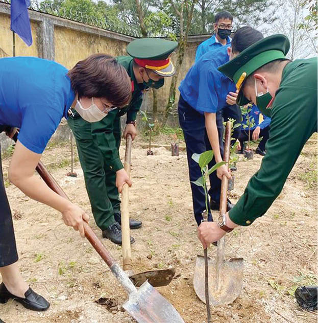 Trồng những cây xanh đầu tiên trong “Vườn cây thanh niên” tại Đồn Biên phòng Hương Nguyên
