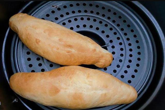 Trước khi làm bánh bằng mì bằng nồi chiên không dầu, bạn nên làm ẩm vỏ bánh để kết cấu bánh cũng không bị phá vỡ và bánh mì được mềm mỏng. Bạn dùng bình phun thực phẩm phun nước hoặc dùng tay rẩy nước lên bánh và bắt đầu nướng.
