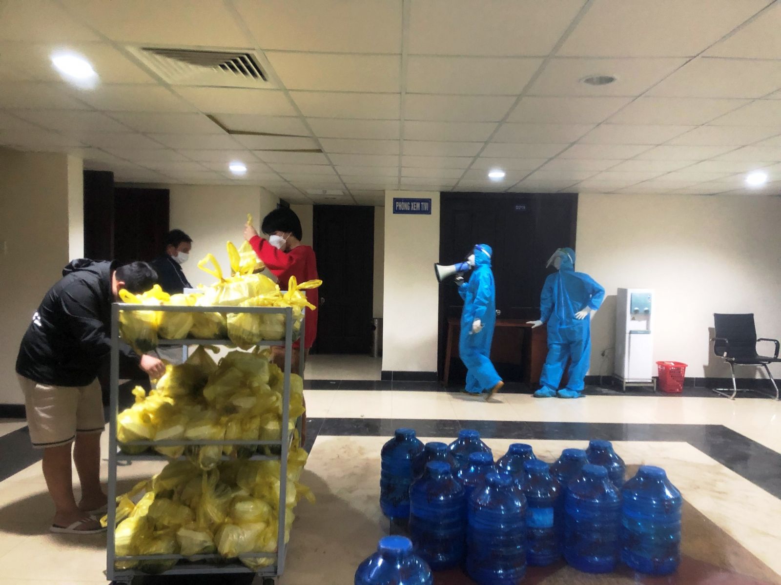 Đội ngũ phục vụ vòng trong vận chuyển cơm đến từng phòng