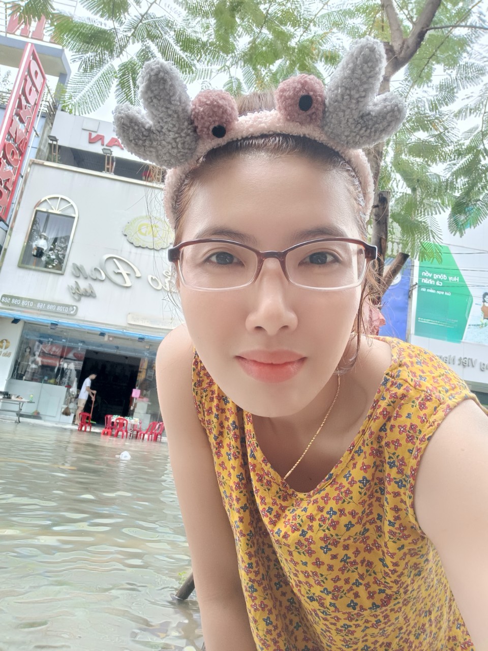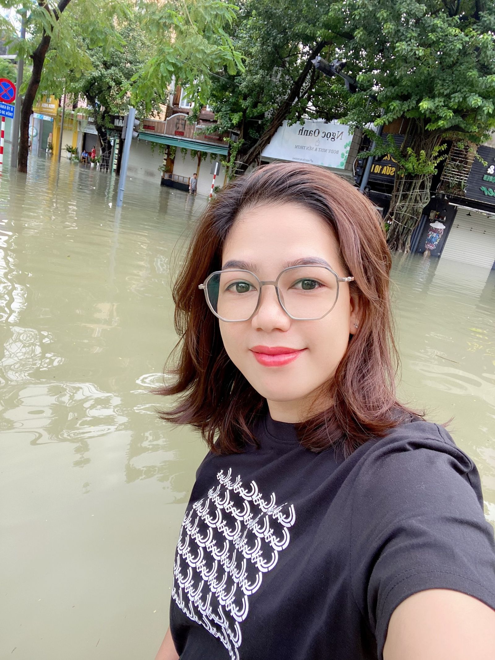 Nguyễn Đăng Hồng Nhi "hít thở không khí lụt" với bức ảnh "tự sướng" trên đường Hùng Vương sáng nay