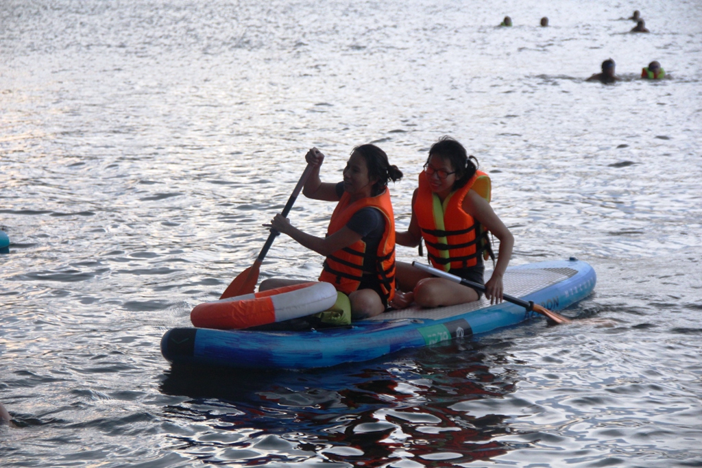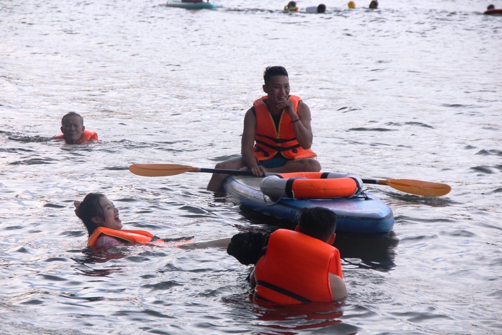 Nhiều người tự sắm thuyền Sup hoặc có thể thuê thuyền Sup để bơi trên mặt sông. Người khác thì bơi men theo bờ sông. Để đảm bảo an toàn, hầu hết đem theo áo phao, bịch nhựa. “Đoạn sông này vừa sạch, nước vừa mát nên ai cũng thích ra tắm. Ai cũng dặn dò nhau cẩn thận, không được bơi ra quá xa, con nít phải mang áo phao và có người lớn đi cùng”, anh N. – một người dân thường xuyên ra tắm chia sẻ.