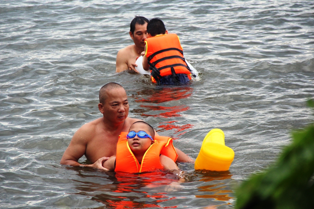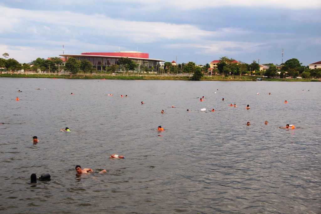 Nước sông Hương rất sạch và mát nên mọi người thỏa thích bơi lội