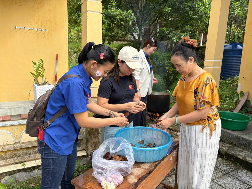 Chi đoàn Báo Huế ngày nay tổ chức nấu ăn và trao quà cho các em học sinh xã A Lưới 4