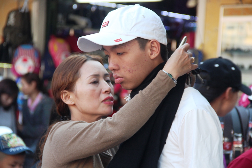 Tiếng rao 20.000, 30.000, 50.000, 70.000 đồng của người bán cứ thế vang lên trong đám đông người mua chen chúc nhau khiến khung cảnh chiều giáp Tết ở khu chợ nổi tiếng đồ bành trở nên nhộn nhịp. Lọt giữa đám đông ấy, Nguyễn Văn Ân (23 tuổi, Hương Toàn, Hương Trà) đang lật lui lật tới chiếc quần rin đến mấy bận nhưng vẫn chưa tìm được cho mình cái ưng ý nhất. Ân kể mình làm thợ nề, bận bịu cuối năm nên giờ mới đi sắm Tết. Hỏi sao không đến những shop thời trang có tiếng, Ân nói ở đó vừa đắt đỏ, nhưng nhiều khi cũng không vừa ý mình. Phần nữa cũng vì thương ba mẹ nghèo khó, nên tiết kiệm. Sau hơn 30 phút, Ân đã lựa được cho mình hai cái quần jean chỉ với giá... 180.000 đồng. “Em đi sắm thêm thắt lưng đây, mua xong đi thăm vài người bà con, về nhà đón Giao thừa là vừa đẹp”, chàng trai có khuôn mặt hiền từ nói với giọng hào hứng.