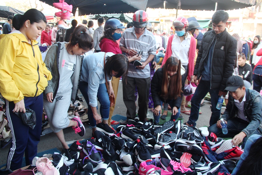 Hàng giày - một trong những nơi cũng chiếm lượng lớn khách ở chợ đồ "bành" Tây Lộc chiều 30 Tết