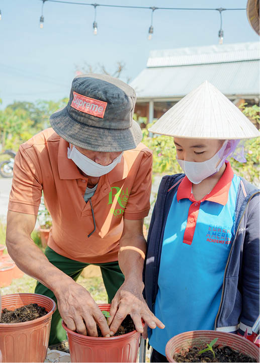 Là nhân viên văn phòng thuộc thế hệ 8X, với anh Dũng và chị Lan, những hoạt động trồng trọt, chăn nuôi không quá xa lạ. Nhưng với bé Moon, 5 tuổi, trải nghiệm cho gà ăn, tự tay trồng những mầm xanh hay hái quả từ trên cây đều là các hoạt động lý thú.