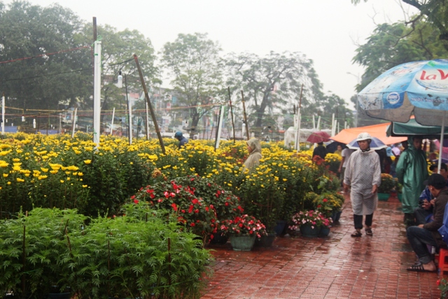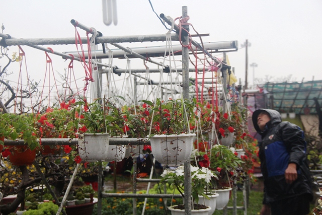 Do mưa lạnh nên lượng người xuống phố hoa rất ít, kéo theo việc bán buôn ế ẩm
