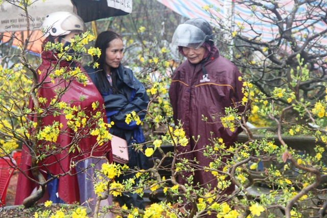 Hoàng mai Huế lung linh giữa mưa, tuy nhiên, đa số khách chỉ đến ngắm và thăm dò giá cả