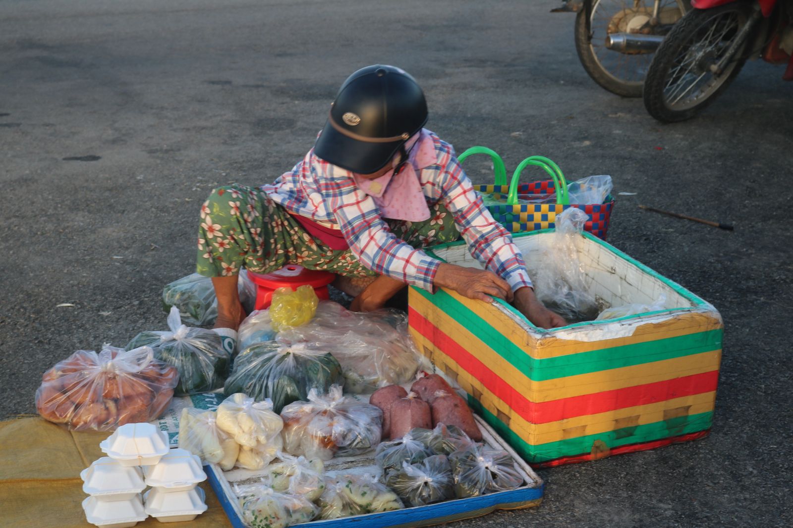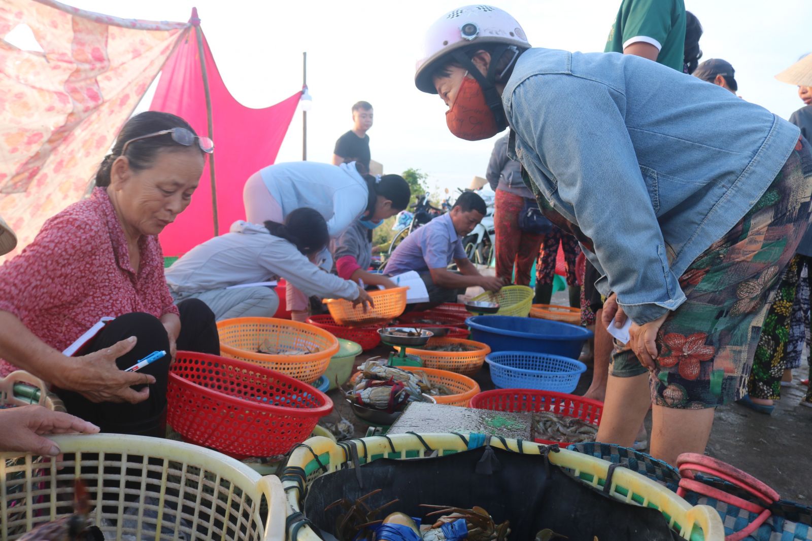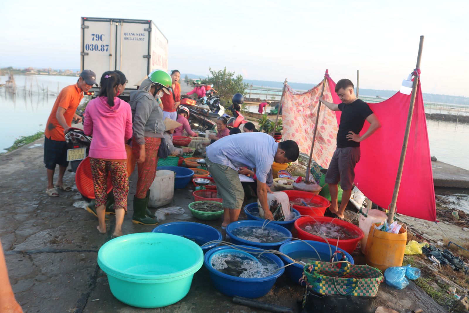 4h sáng, những chiếc thuyền nhỏ sau 1 đêm thả lưới, thu lừ… cập bến mang theo nhiều loại tôm, cá, cua tươi xanh. Cũng lúc này, cánh tiểu thương cũng có mặt đón những giỏ, oi cá đầy nhóc. Mọi người lại xúm đến ngắm nghía, hỏi han. Không như lúc được bày bán ở các chợ lớn, hải sản thường nhiều và đã tuyển lựa, phân loại, ở đây phần nhiều là các mớ hải sản lẫn lộn các loại, con to, con nhỏ vì vừa đưa ở ghe lên là trút luôn ra bán. Người mua cũng khá đông, có người tranh thủ đi chợ sớm và cũng có nhiều người tiện đi tập thể dục ghé qua...