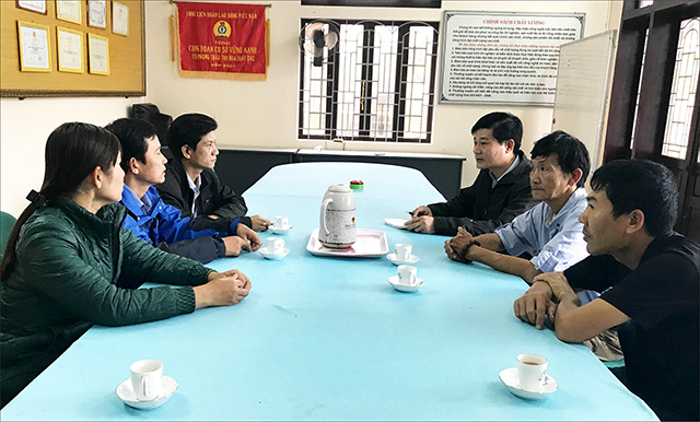 Cán bộ Công đoàn Công ty Coxano cùng lãnh đạo Công đoàn ngành Nông nghiệp và phát triển Nông thôn (bên phải) trao đổi, nắm bắt tâm tư nguyện vọng của người lao động