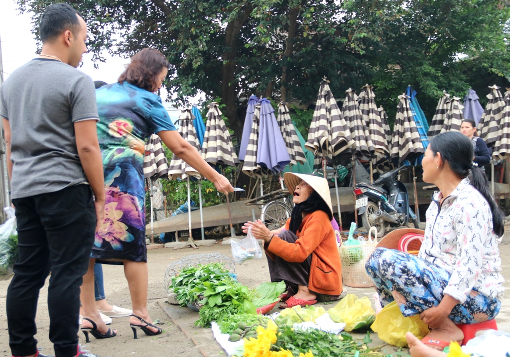 Du khách ghé chợ Thủy Thanh lúc hơn 7 giờ sáng
