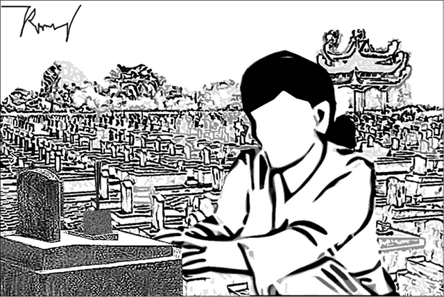 Trước 27/7 năm ngoái, tôi lại đến dâng nén tâm hương lên bàn thờ chung của nghĩa trang, lên mộ bác và những ngôi mộ liệt sĩ nằm san sát, đồng đội của bác tôi. Ở khu mộ bên cạnh, một phụ nữ tuổi tầm ngoài bảy mươi và người đàn ông trung niên đang lúi húi cẩn thận cắm hương lên từng ngôi mộ, suốt mấy dãy dài. Đặc biệt, với những ngôi mộ mà tấm bia ghi “liệt sĩ chưa biết tên”, người phụ nữ dừng lại lâu hơn một chút. Sau cùng, bà trở lại ngồi cạnh ngôi mộ của người thân, ôm lấy ngôi mộ, òa khóc.