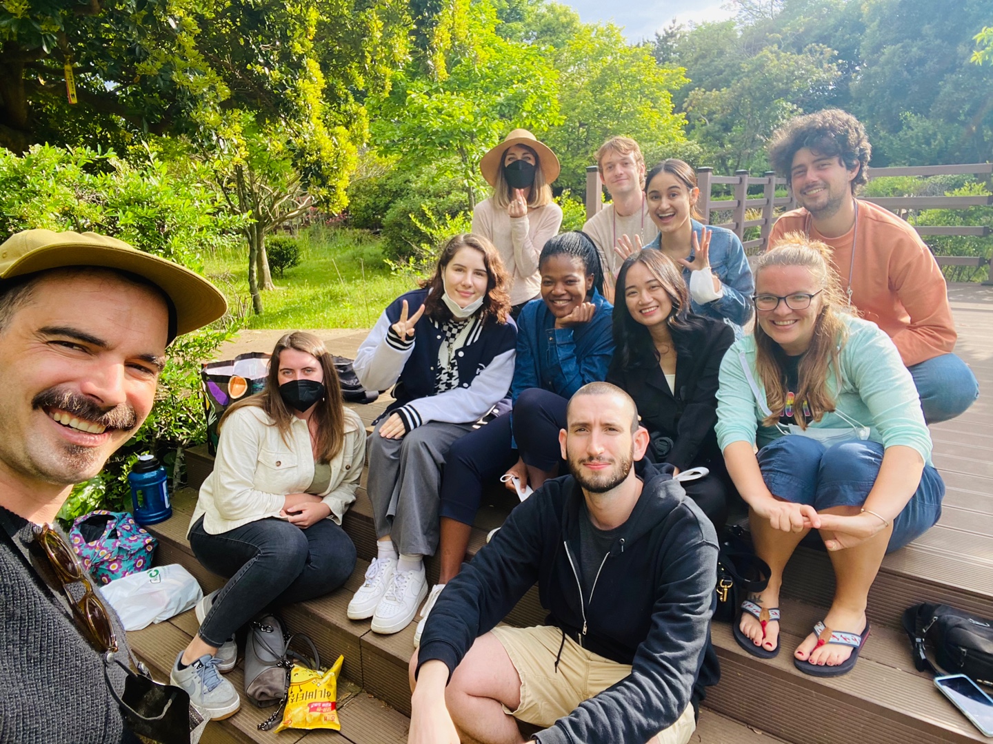 Uyên Sa cùng nhóm các đồng nghiệp đến từ nhiều quốc tịch khác nhau trong chuyến dã ngoại ở Hàn Quốc