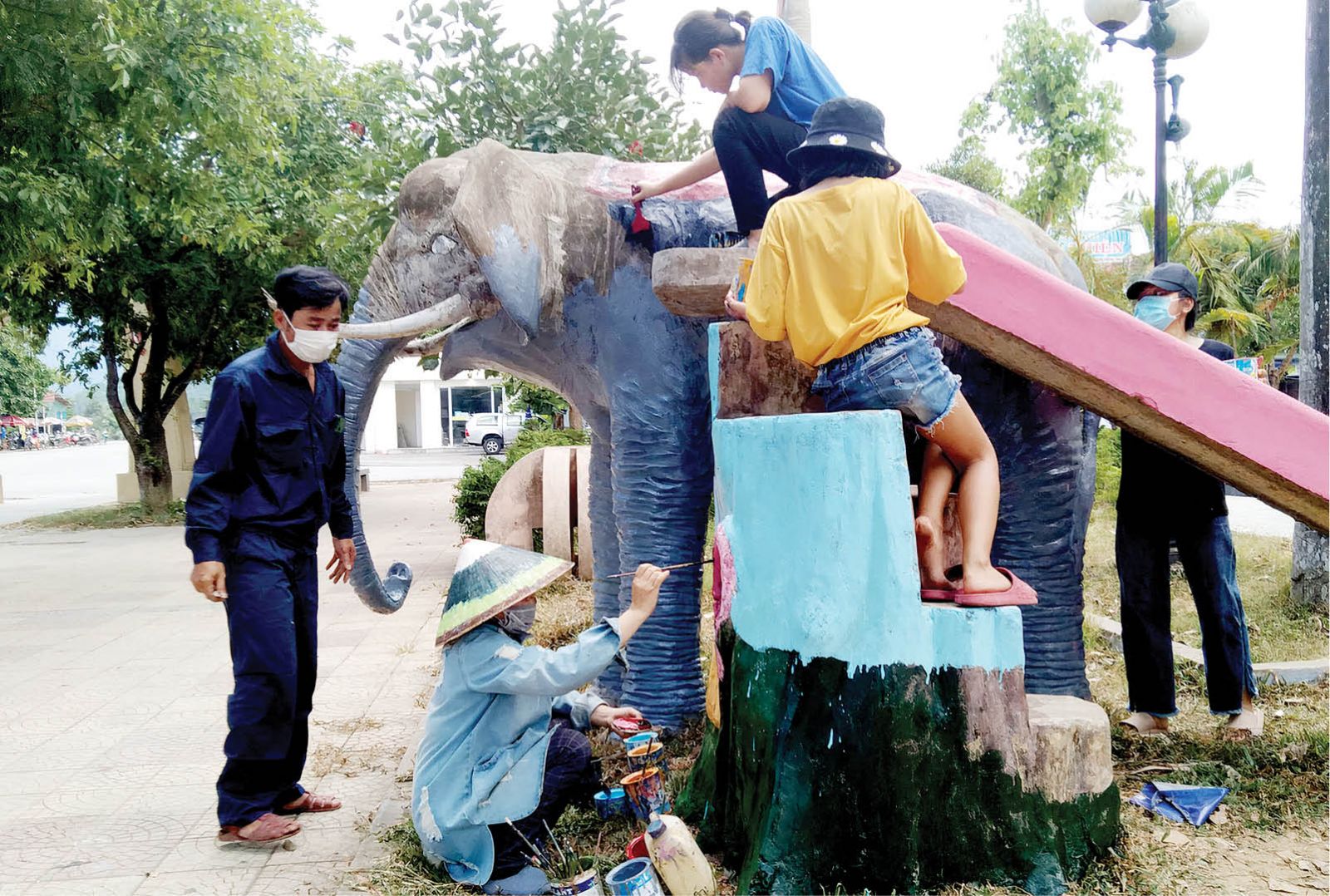 Giữa tháng 4 vừa qua, chị Nam chia sẻ trên facebook về “dự án” phục dựng chú voi đá ở công viên huyện Nam Đông. Chị cho biết, chú voi đá ở công viên là ký ức tuổi thơ của biết bao nhiêu thế hệ người ở Nam Đông. Cả huyện chỉ có một con voi để trẻ em tới vui chơi, chụp hình kỷ niệm nhưng hiện tại chú voi đã bị xuống cấp. Với mong muốn làm đẹp cho bộ mặt của huyện, giúp các em nhỏ có chỗ vui chơi đẹp, sinh động, chị Nam quyết định cùng các em học sinh trong trường phục dựng lại chú voi này. Biết tin, người dân Nam Đông ở trong và ngoài huyện đã nhắn tin để ủng hộ chị Nam rất nhiều. Có em cựu học sinh của chị hiện đang ở nước ngoài, khi biết tin cô giáo sơn, sửa lại con voi đã xin được tài trợ toàn bộ tiền sơn. Nhiều người thấy trời nắng chang chang mà cô trò vẫn phơi nắng để vẽ voi liền “ship” nước chanh tới cho cô trò giải nhiệt, có người lại ủng hộ lốc nước ngọt, ly trà sữa,… khiến cô trò quên cả cái nóng mùa hè.