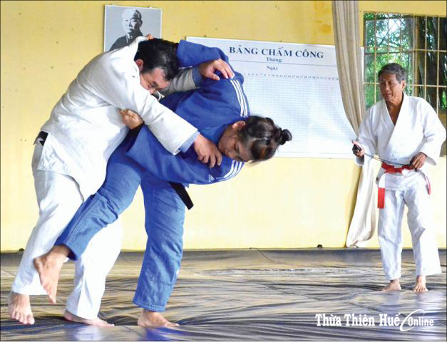 Võ sư Lê Thanh Vĩnh trong một lần huấn luyện cô gái vàng Judo khu vực Nguyễn Thị Như Ý