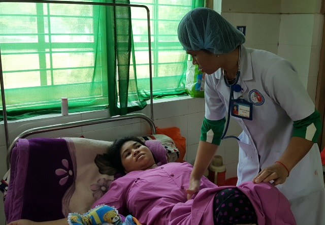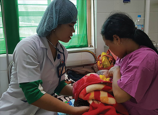 Bác sĩ Phan tư vấn chế độ chăm sóc cho trẻ sau sinh tại Khoa Ngoại sản, TTYT huyện A Lưới