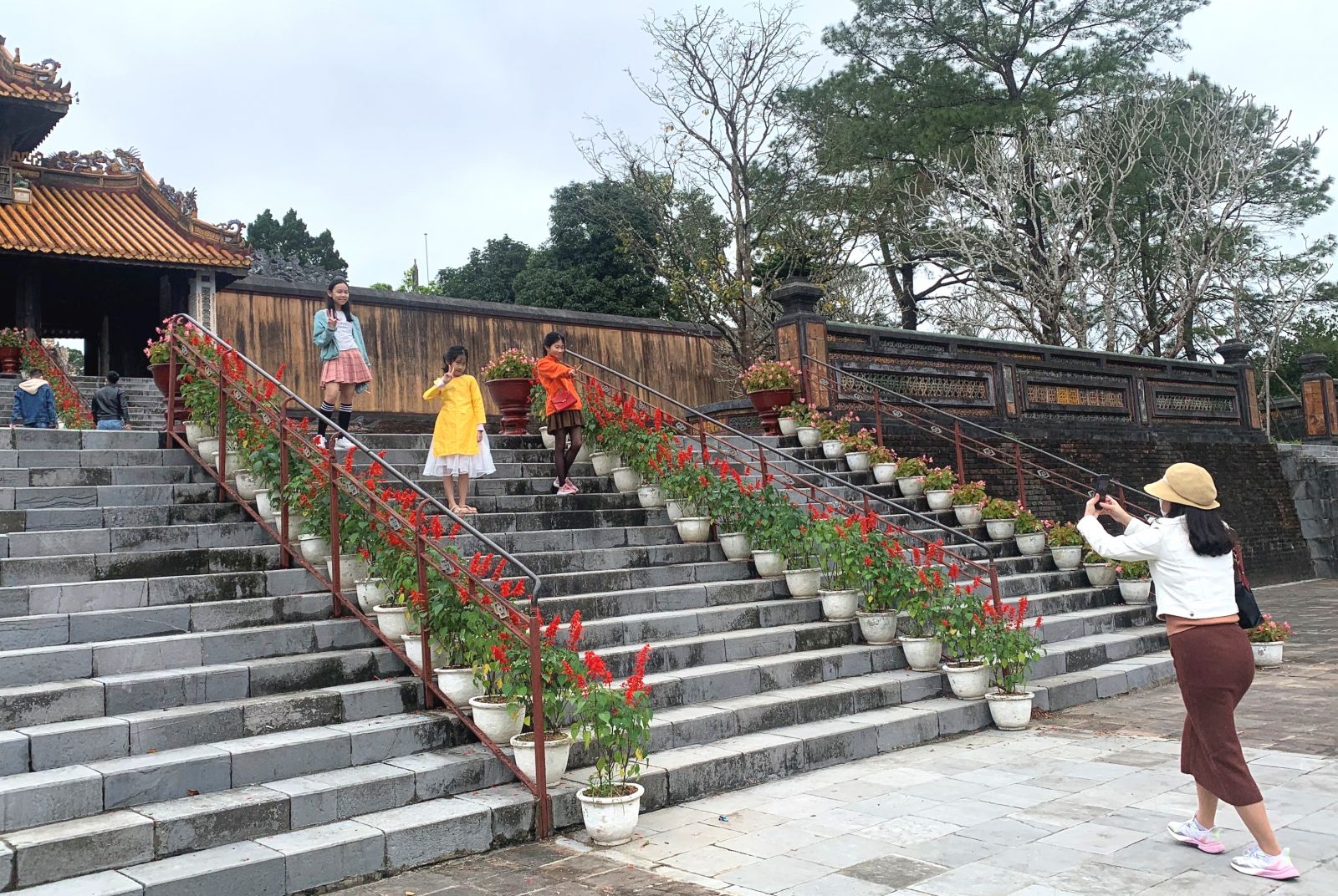 Du khách tham quan lăng Tự Đức sáng mùng 2 Tết. Ảnh: N.H