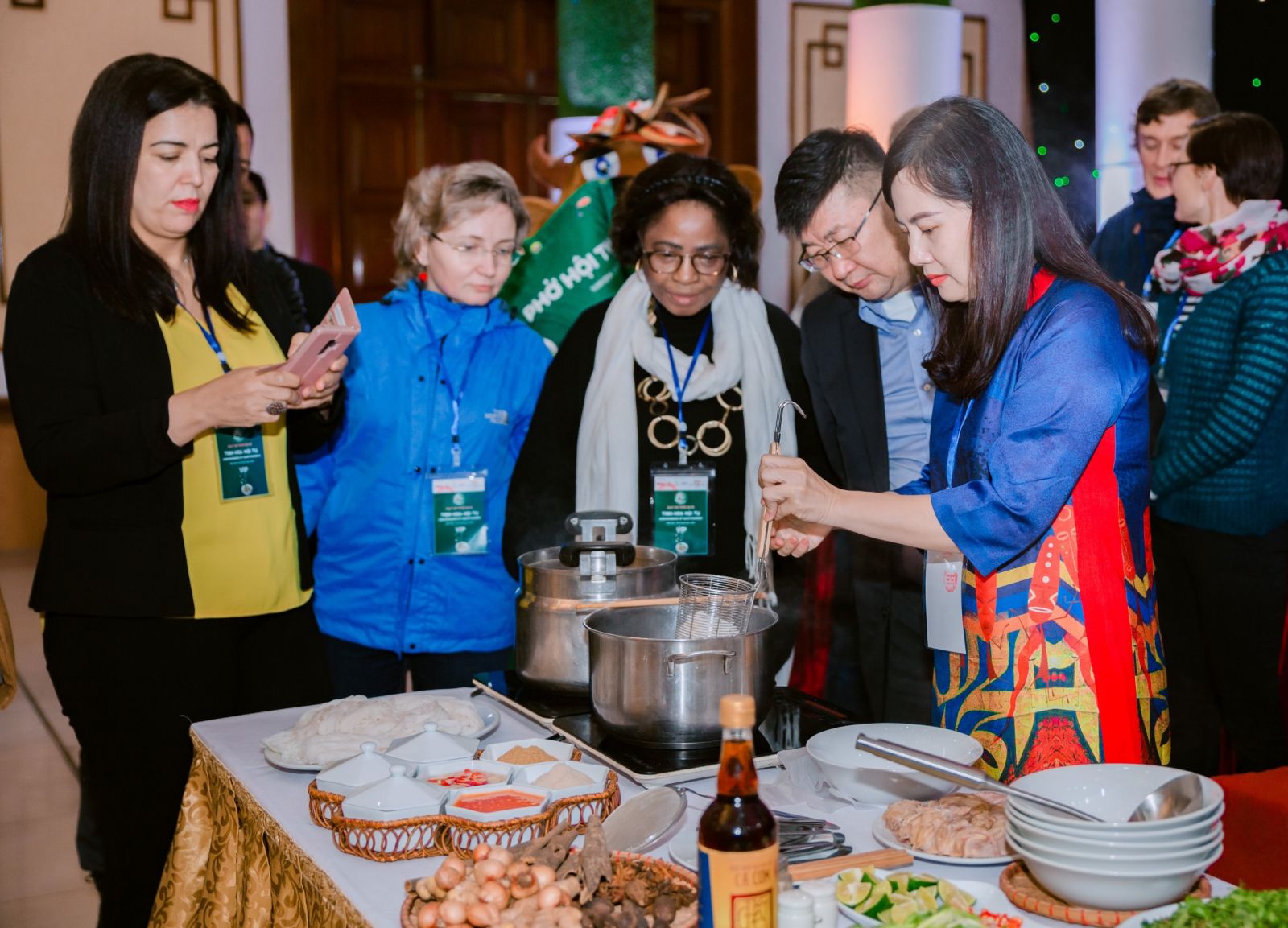 Các đại biểu Ngoại giao đoàn trải nghiệm cách làm một tô phở