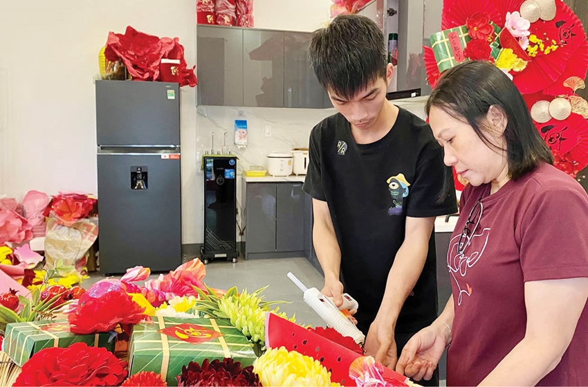 “Hiện nay, xu hướng các món đồ trang trí đang “hot”. Những sản phẩm với kích thước lớn như các loại nơ khổng lồ, hoa giấy khổng lồ, mẹt trang trí chúc mừng năm mới… được khách hàng ưa chuộng. Vì thế, mình đã làm thêm nhiều sản phẩm, quảng bá trên các trang mạng xã hội để bắt kịp xu hướng, đáp ứng nhu cầu của khách hàng”, Sơn nói thêm.