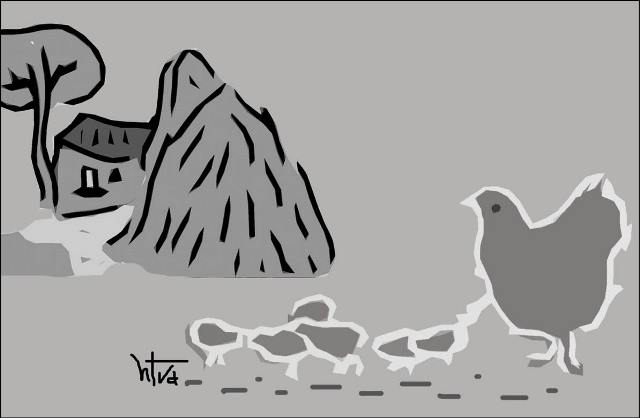 Chỉ sau vài ngày, gà con cứng cáp, mạ chuyển chúng ra góc vườn. Gà con tóc tóc mổ tấm, bươi giun bươi đất, gà mẹ được bồi dưỡng cơm, cá, cỏ xanh. Những chú chó nhà tôi thấy gà con lạ cứ chạy đến ngửi ngửi, rồi khi đã quen hơi, chúng trở thành vệ sĩ đắc lực bảo vệ đàn gà khỏi rắn rết, diều hâu.