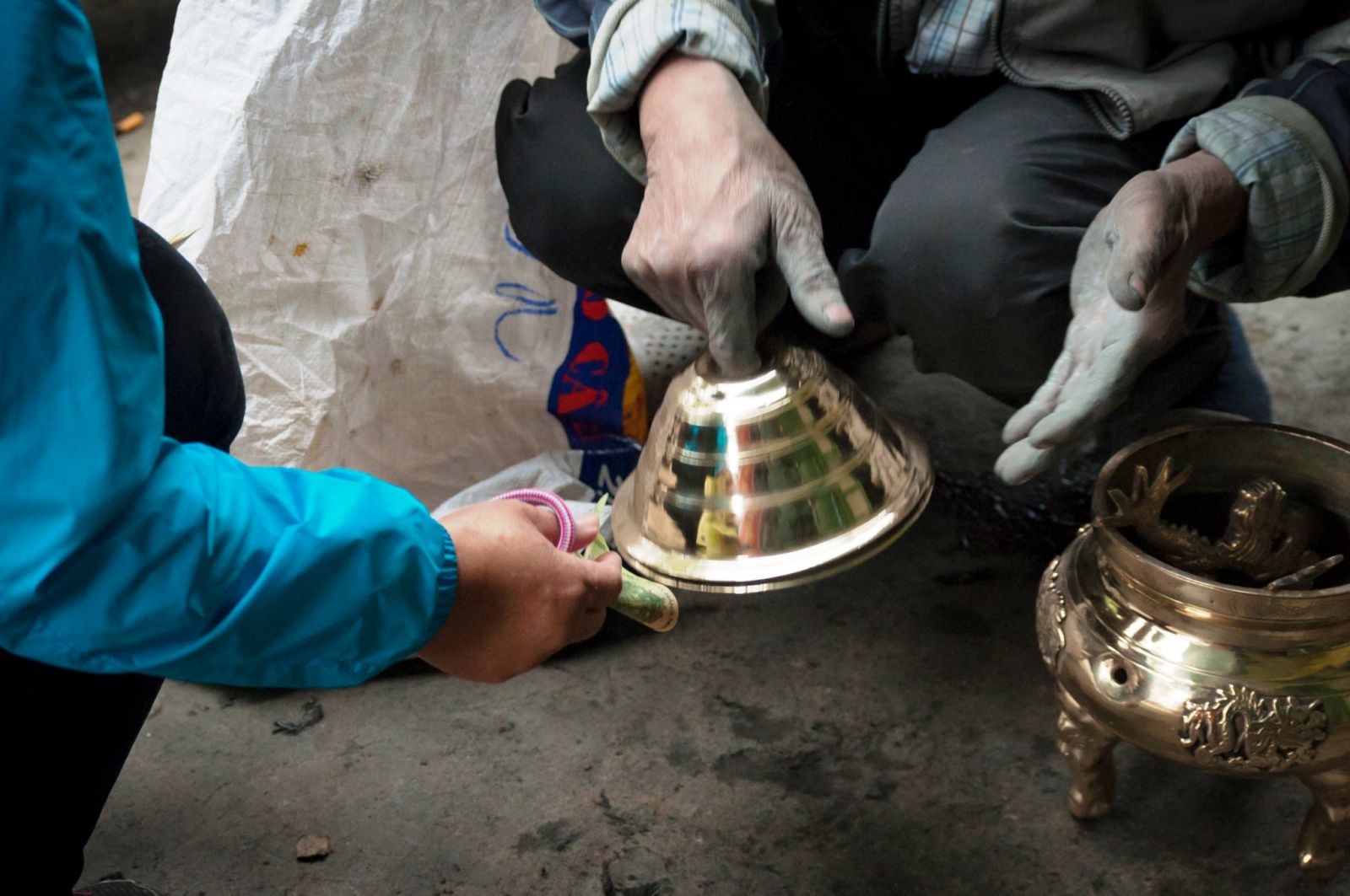 Công bình quân đánh bóng một bộ đồ đồng thờ tự khoảng 100ngàn đồng.