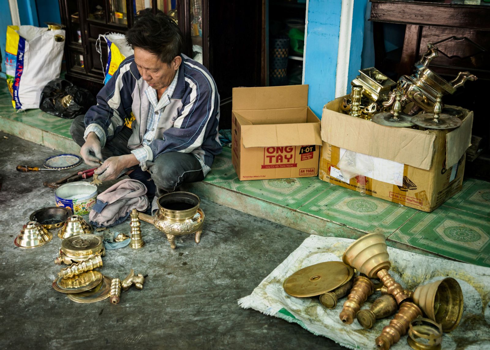 Đồ đồng được mặc áo mới dưới bàn tay xử lý của người thợ