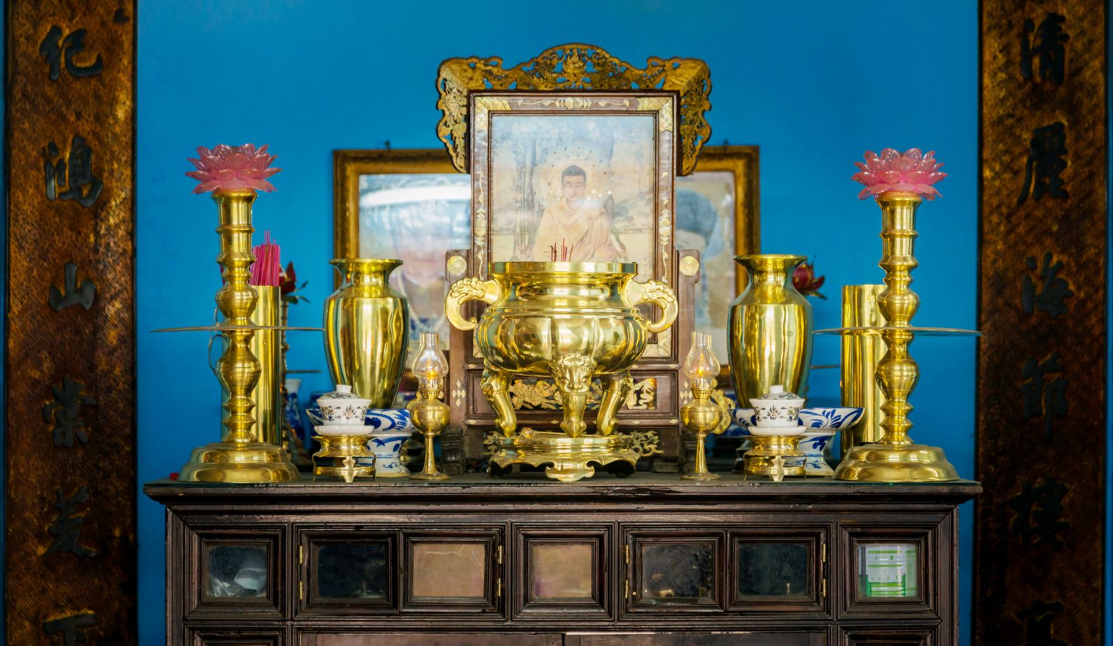 Những bộ lư, đèn đồng quen thuộc trên bàn thờ của các gia đình người Huế