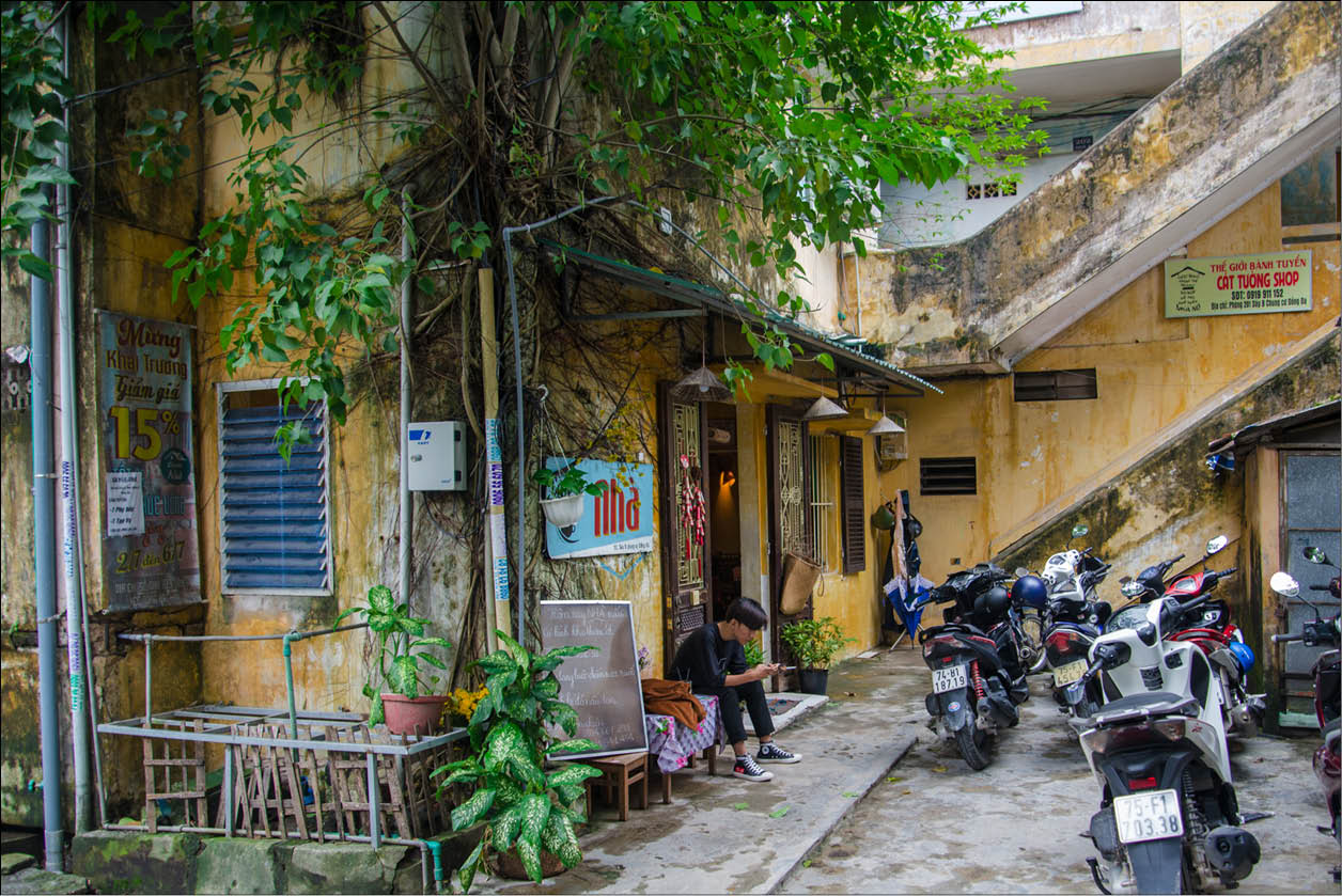 Cà phê Nhà, một không gian khác “nhắc nhiều” về thời tem phiếu lại được thiết kế tối giản nhưng tạo ấn tượng bởi vị trí ở dãy nhà B chung cư Đống Đa (đường Lê Hồng Phong, TP. Huế). “Không gian căn phòng này rất hợp với ý tưởng về mô hình quán cà phê mà chúng mình phác thảo, từ địa điểm phía bên dưới chân cầu thang chung cư đến lối vào, mảng tường… Có lẽ, cái duyên đã giúp chúng mình lựa chọn được vị trí này dù có lúc đã nản vì tìm không được địa điểm ưng ý”, bạn Hồ Thị Thanh Thúy, đồng sáng lập quán cà phê Nhà chia sẻ.