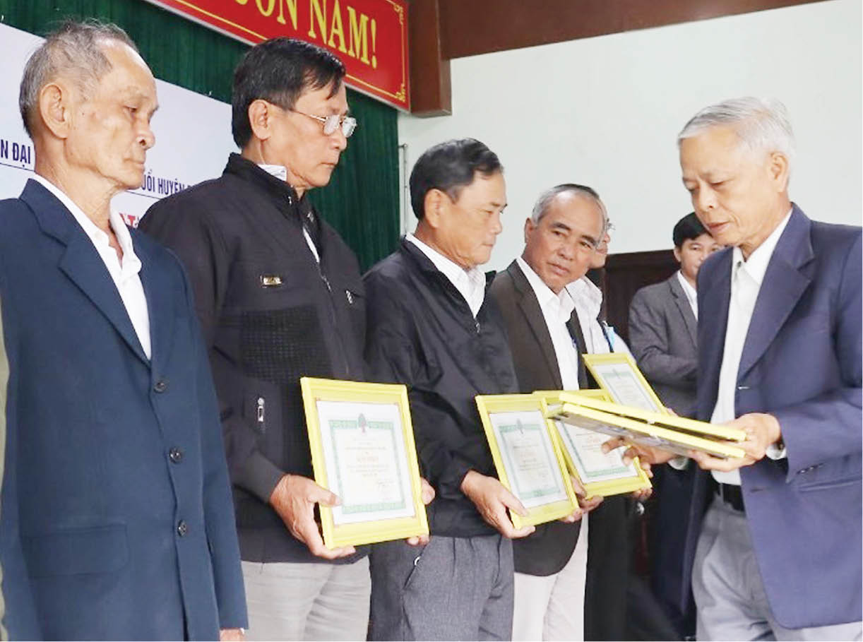 Trao tặng kỷ niệm chương và giấy khen cho người cao tuổi tại huyện Phú Vang. Ảnh: Hội Người cao tuổi cung cấp