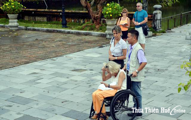 Từng dẫn đoàn khách có người khuyết tật, hướng dẫn viên Nguyễn Đình Quyên cho biết, hầu hết các phương tiện giao thông, các điểm du lịch ở Huế nói riêng và cả nước nói chung đều chưa thiết kế và chưa có nhiều công trình dành cho người khuyết tật. Như khi đưa người khuyết tật lên xe khách thì phải bưng, trong khi đó, cửa xe lại nhỏ nên rất khó khăn. Ngay cả khi vào Đại Nội, đi xe lăn trên các con đường cũng khó vì đường làm bằng gạch, có các khe hở và có độ chênh giữa các viên gạch. Hiện tại, chỉ có các khách sạn là có thể phục vụ tốt người khuyết tật.