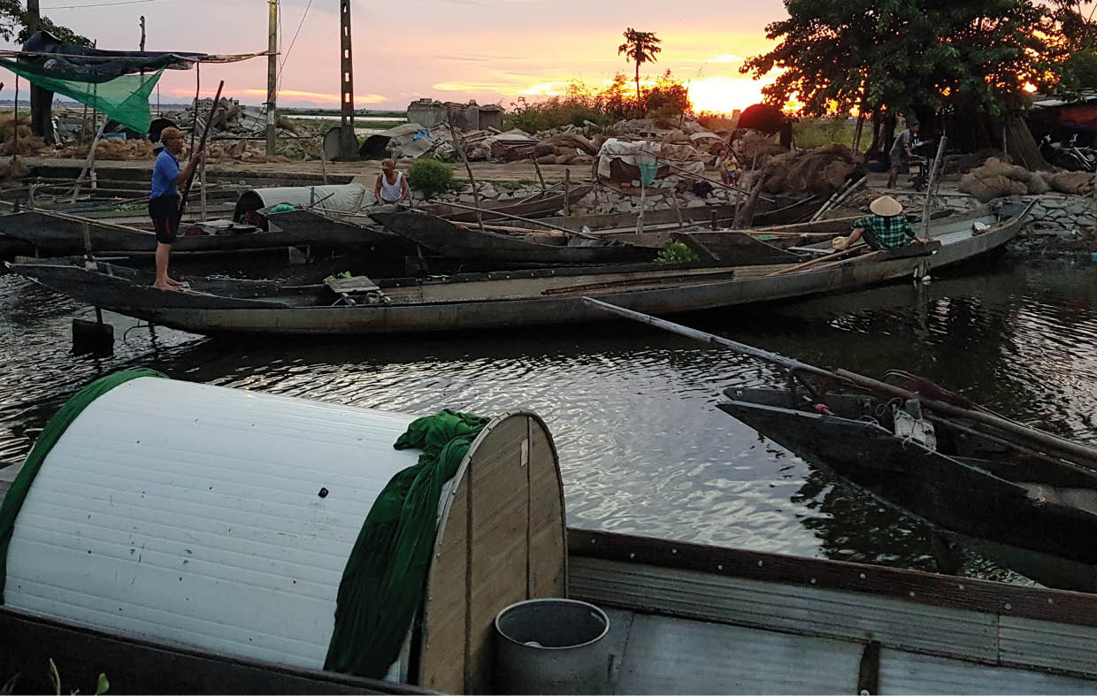 Sau bữa cơm ấy, đò lại nổ máy chạy ra xa hơn. Thi thoảng gặp đò bạn, những tiếng chào, vẫy tay hỏi thăm khi thấy đoàn khách lạ xuất hiện trên đò anh Tường. Cứ thế, có lúc đò chạy qua tận bên kia phá, nơi có ánh đèn vàng sầm uất giáp bờ Quảng Lợi, huyện Quảng Điền.