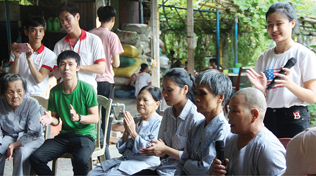 Các bạn trẻ nhóm thiện nguyện Người Việt Trẻ tổ chức vui chơi, ca hát cho các cụ bà ở Nhà dưỡng lão Diệu Viên